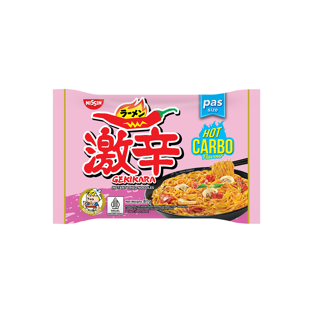 Gekikara Pas Hot Carbo adalah ramen dengan tekstur kenyal dan lembut dari mi berpadu dengan rasa pedas dan creamy dari keju. Gekikara Ramen Hot Carbo memberikan cita rasa carbonara yang pedas dan creamy. Dengan ukuran Pas, ramen ini cocok untuk memenuhi keinginan Anda. Gekikara Ramen Pas Hot Carbo, pedasnya enak gila! Produk ekspor ke Pakistan and Bangladesh